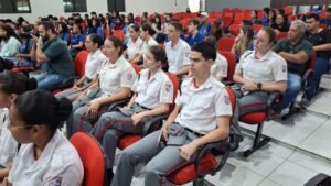 A Câmara de Vereadores de Lucas do Rio Verde realizou nesta quarta-feira (21) o evento “Papo Reto”, reunindo turmas do 3º ano do Ensino Médio das escolas Dom Bosco, Manoel de Barros, Ângelo Nadin e Militar Tiradentes. A iniciativa partiu da Procuradoria da Mulher do Legislativo e contou com a parceria da Secretaria de Assistência Social e Habitação, da Polícia Civil e da Guarda Civil Municipal. O objetivo foi promover um diálogo direto com os jovens sobre violência doméstica, um tema considerado urgente e crucial para a formação cidadã.