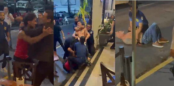 Vídeos gravados no local mostram uma confusão generalizada, com o suspeito visivelmente embriagado. De acordo com o boletim de ocorrência, por volta das 0h55, a Polícia Militar foi acionada pelo gerente de um bar após um casal entrar em vias de fato.